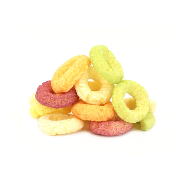Bunte süße und knusprige Ringe. Stecken Ihre Kinder sie sich auch als Ringe an den Finger? Sie sind glutenfrei.