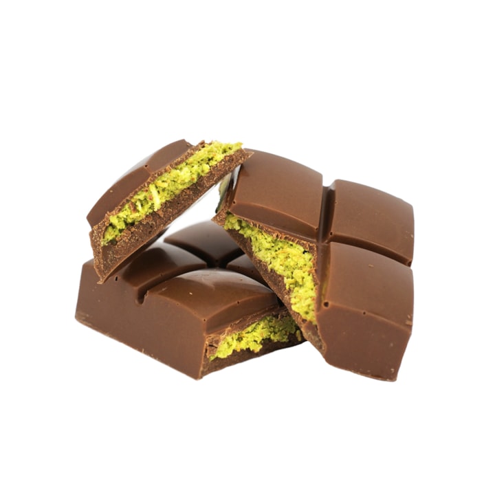 Mléčná čokoláda s pistáciovou náplní a pečenými nitěmi Kadayif