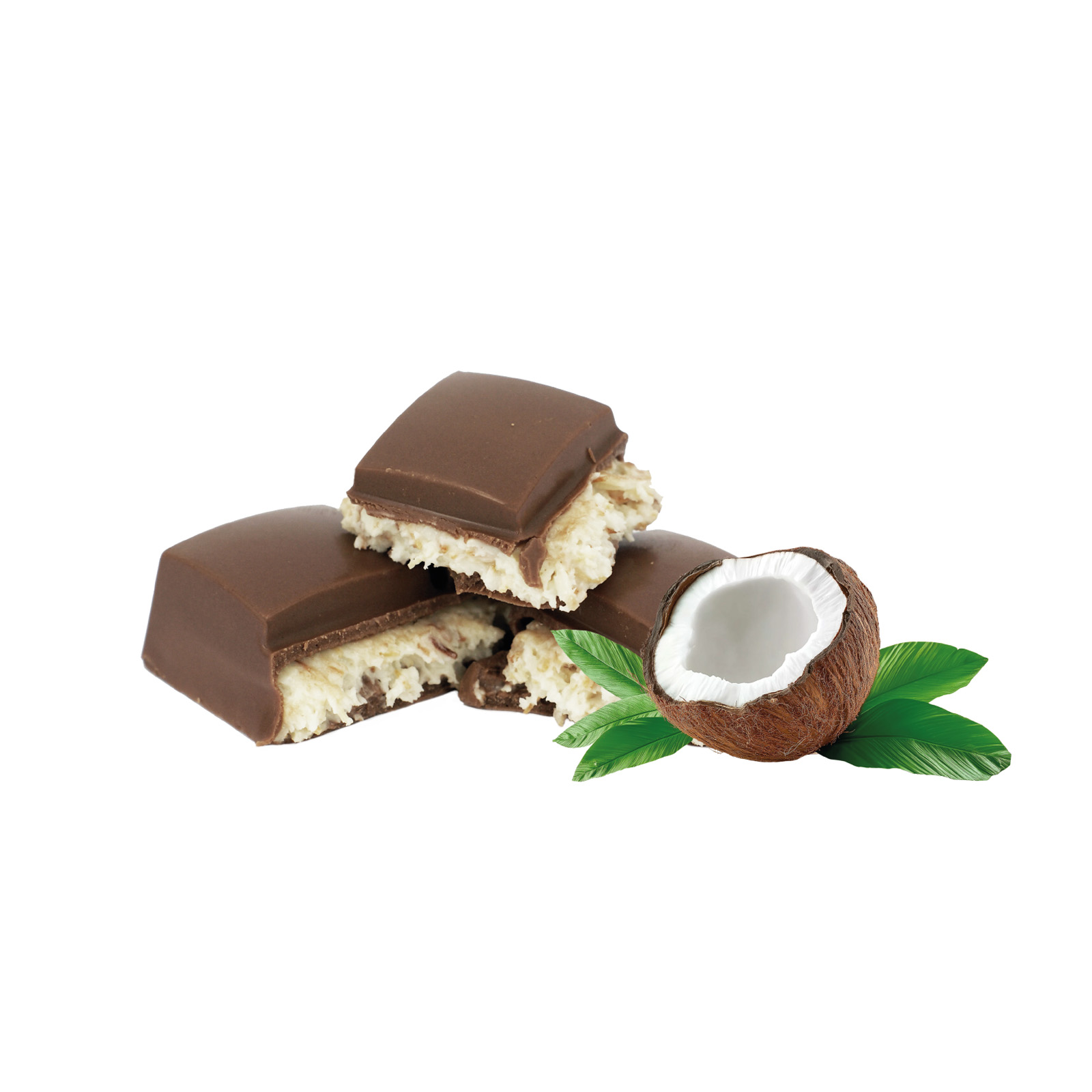 mléčná čokoláda 57 % (cukr, kakaové máslo, sušené MLÉKO, kakaová hmota, emulgátor: lecitiny; přírodní vanilkové aroma), kokosová náplň 43 % [cukr, olej z máslovníku, sušená SYROVÁTKA, strouhaný kokos 15 %, pečené nitě Kadayif 8 % (PŠENIČNÁ mouka, pitná voda), sušené MLÉKO, emulgátor: lecitiny; aroma].